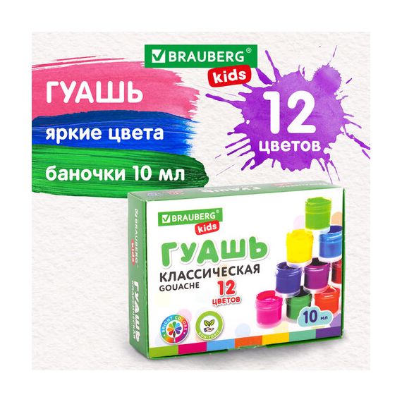 Гуашь BRAUBERG KIDS поможет создать юным художникам первые шедевры. Хорошо наносится на бумагу, картон, дерево, стекло, керамику.