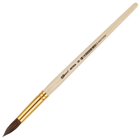 Художественные кисти ArtSpace изготовлены из натурального волоса белки. Подходят для начальных уроков рисования. Кисть круглой формы с короткой ручкой из дерева предназначены для работы с акварельными красками. Эластичный, мягкий волос прекрасно сохраняет форму пучка. Специальные технологии обработки повышают его упругость. Кисть позволяет создавать точнкие линии благодаря способности волосков плотно прилегать друг к другу во влажной среде.