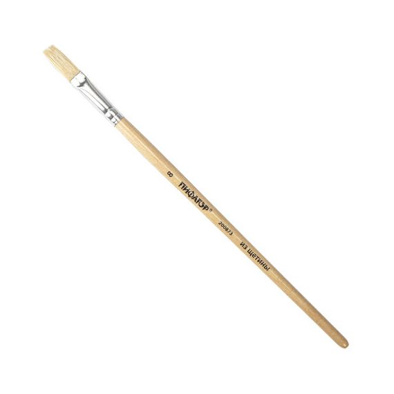 Кисть ПИФАГОР, ЩЕТИНА, плоская, № 8, деревянная лакированная ручка, пакет с подвесом