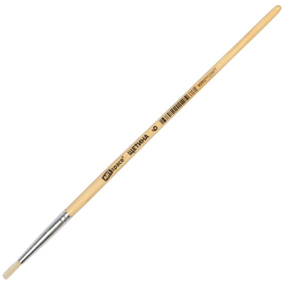 Художественные кисти ArtSpace изготовлены из качественной щетины. Изделие даже после продолжительного использования не теряет форму. Ещё одним важным свойством является расщеплённый кончик, который способствует хорошей наполняемости кисти и ровному нанесению краски. Кисть круглой формы с короткой ручкой из дерева предназначена для работ с «тяжёлыми красками»: маслом, акрилом, темперой, гуашью. Натуральные кисти из щетины - отличный инструмент как для детского и школьного творчества, так для хобби и профессиональной живописи. Ручка кисти изготовлена из берёзы и покрыта глянцевым лаком.
