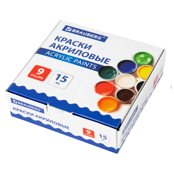 Краски акриловые для рисования и творчества 9 цветов по 15 мл, BRAUBERG