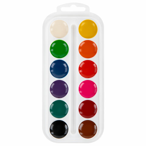 12 ярких насыщенных цветов отлично смешиваются между собой и позволяют создать множество оттенков, обеспечивают однородное окрашивание. Краски быстро высыхают и не портятся со временем. Безопасны для детей, нетоксичны. Выпускаются в картонной коробке с корексом, круглой формой кювет и отделением для кисточки. Упаковка обладает компактными размерами и легким весом.