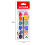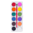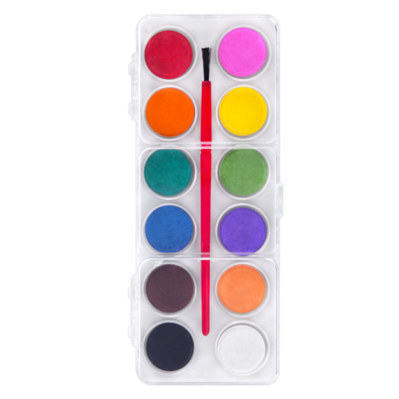 12 ярких цветов отлично смешиваются между собой и позволяют создать множество оттенков. Краски быстро высыхают и не портятся со временем. Безопасны для детей, нетоксичны. Выпускаются в пластиковом пенале и дополнительном пакете, кюветы круглой формы и кисточка в комплекте. Упаковка обладает компактными размерами и легким весом.