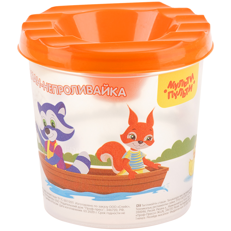 Стакан-непроливайка Мульти-Пульти "Приключения енота" (полный 250мл, до уровня 50мл), с рисунком, Россия