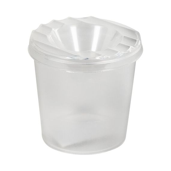 Стакан выполнен из прочного пластика. Линия на прозрачном корпусе указывает на максимально возможный уровень наполнения. Специальная форма крышки стакана исключает возможность вытекания воды. На крышке имеются углубления для размещения кисточек. Полный объем - 210 мл. Объем до уровня наполнения - 75 мл.