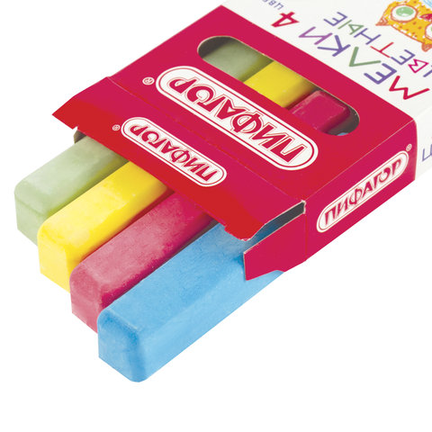 Мел цветной квадратный 4 штуки, ПИФАГОР, картонная упаковка, европодвес