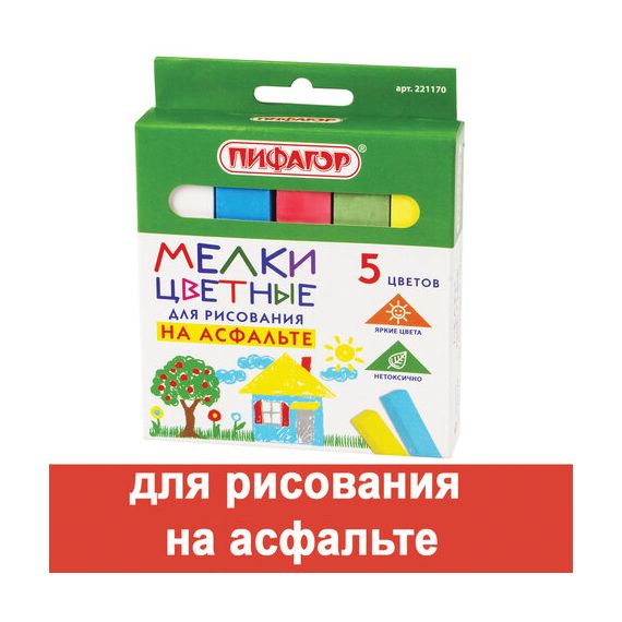 Цветной мел ПИФАГОР предназначен для письма и рисования на асфальте.