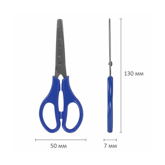 Ребенок без труда сможет пользоваться такими ножницами, так как их длина 130 мм. Закругленные концы гарантируют безопасность при использовании ножниц по назначению. Лезвия изготовлены из прочной нержавеющей стали, что обеспечивает максимально долгий срок службы и аккуратное разрезание разных видов материалов. Предназначены для правшей.