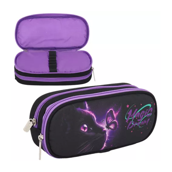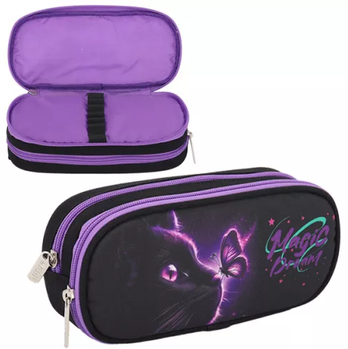 Пенал "deVENTE. Magic Dream" 22x9,5x7 см овальный, плотный износостойкий полиэстер с водоотталкивающей пропиткой, овальный формы с 2-мя отделениями на молнии для 60 предметов (одно с внутренним органайзером), черный