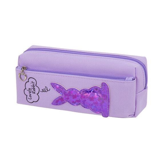 Пенал мягкий ЮНЛАНДИЯ, 2 отделения, полиэстер, "Bunny", фиолетовый, 20х7х9 см
