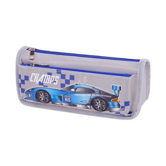 Пенал мягкий ЮНЛАНДИЯ, 2 отделения, полиэстер, "Car champion", серый, 21х6х9 см