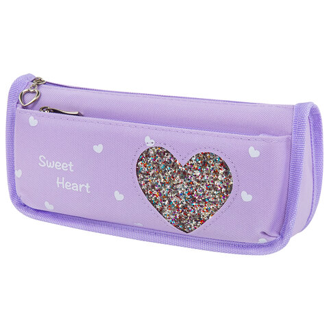 Пенал мягкий ЮНЛАНДИЯ, 2 отделения, полиэстер, "Heart", фиолетовый, 21х6х9 см