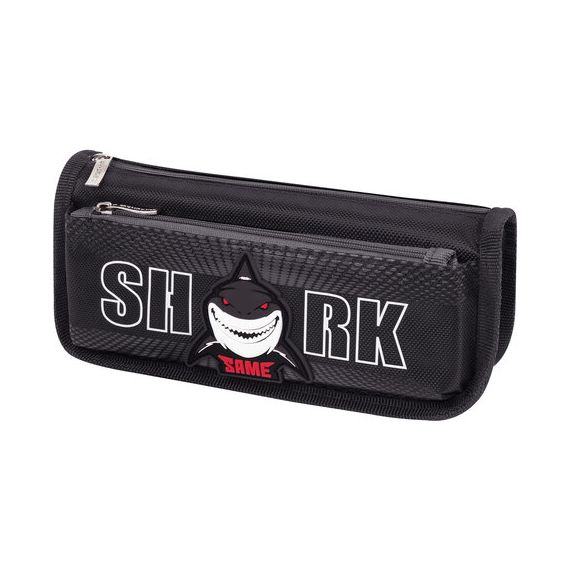 Пенал ЮНЛАНДИЯ, 2 отделения, полиэстер, "Shark", черный, 21х6х9 см