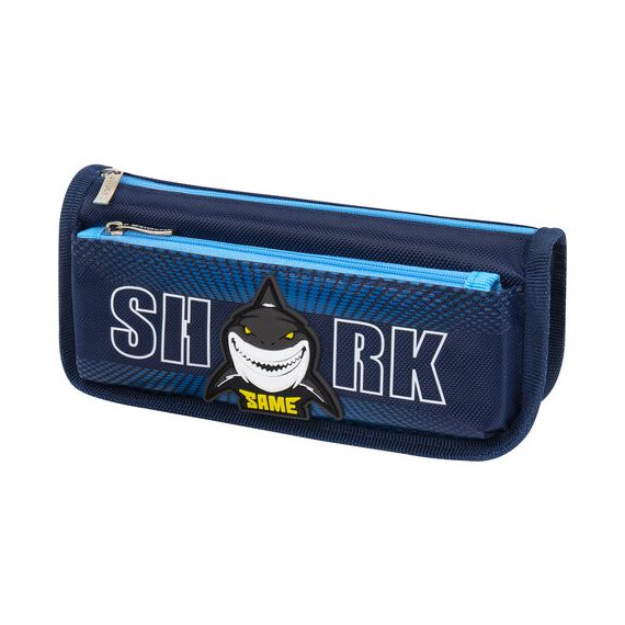 Пенал ЮНЛАНДИЯ, 2 отделения, полиэстер, "Shark", синий, 21х6х9 см