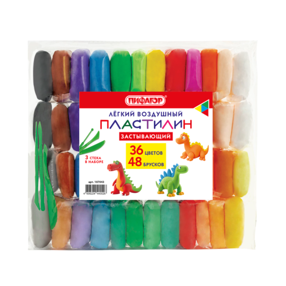 Пластилин лёгкий воздушный застывающий 48 штук (36 цветов + 12 базовых), 410 г, 3 стека, ПИФАГОР