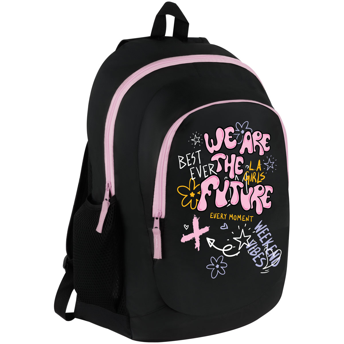 Рюкзак ArtSpace Classic "Best ever" подойдёт как для учёбы, так и для повседневной носки. Он состоит из двух отделений, оснащён двумя сетчатыми карманами для бутылок воды. Рюкзак сделан из водоотталкивающей ткани — полиэстера. Спинка и лямки уплотнены слоем спонжа толщиной 5 мм. Размер — 45*30*16 см. Облегчённая модель весит 300 г.
