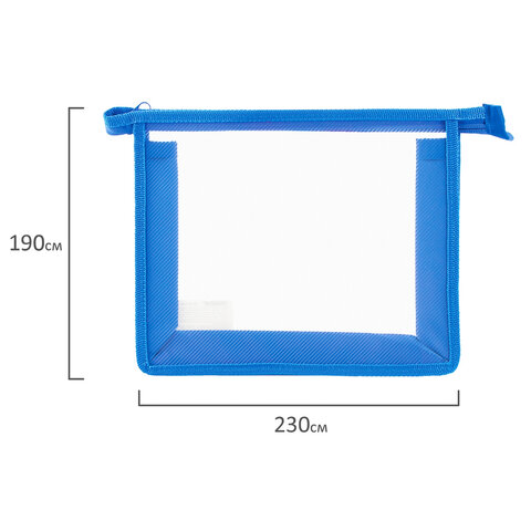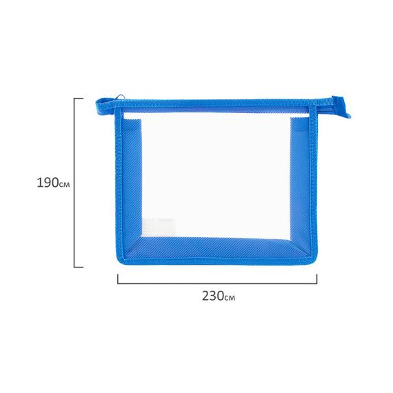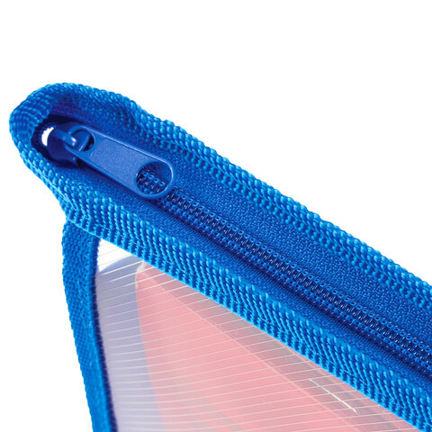 Папка для тетрадей А5 ПИФАГОР, пластик, молния сверху, прозрачная, синяя