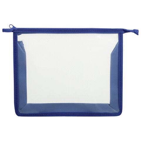 Папка для тетрадей ПИФАГОР А5, пластик, молния сверху, прозрачная, синий