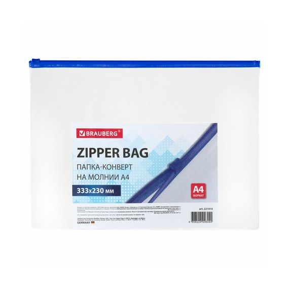 Папка-конверт на молнии BRAUBERG идеально подойдет для хранения и транспортировки документов.