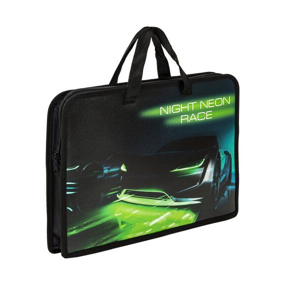 Папка на молнии с ручками ЮНЛАНДИЯ А4, 1 отделение, пластик, ширина 45 мм, "Neon race"