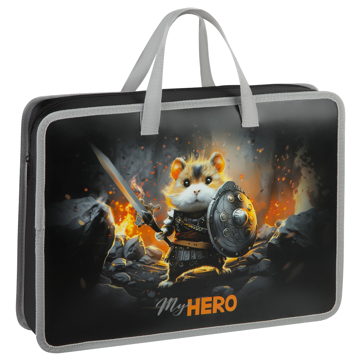 Папка с ручками А4 ArtSpace "Hamster hero", пластик, на молнии, 70мм