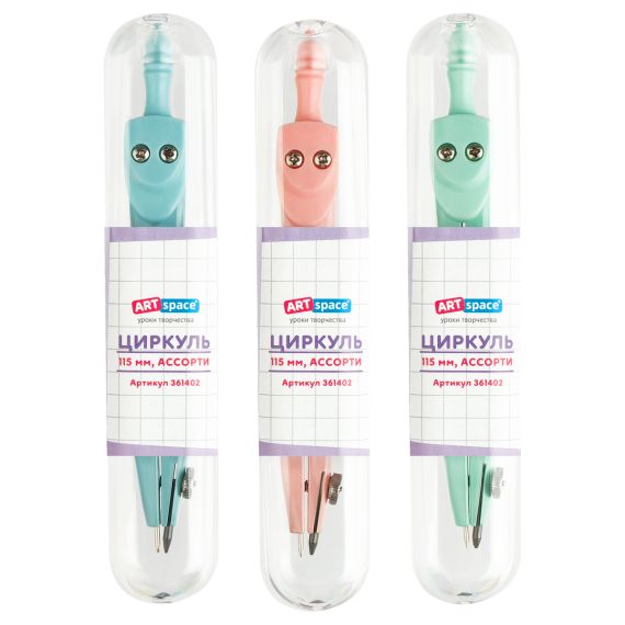 Циркуль ArtSpace металлический, 115мм, пластиковый пенал, пастельные цвета ассорти