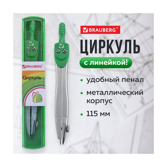 Качественный металлический циркуль BRAUBERG "Klasse" предназначен для учеников младших и средних классов.