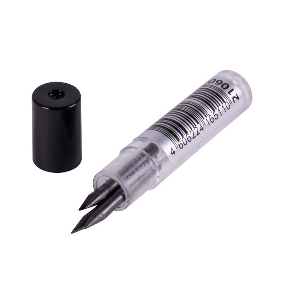 Представляют собой графит средней степени твердости – HB. Длина грифеля составляет 17 мм, а его толщина - 2 мм. 4 штуки в упаковке. Поставляются в пластиковой тубе.