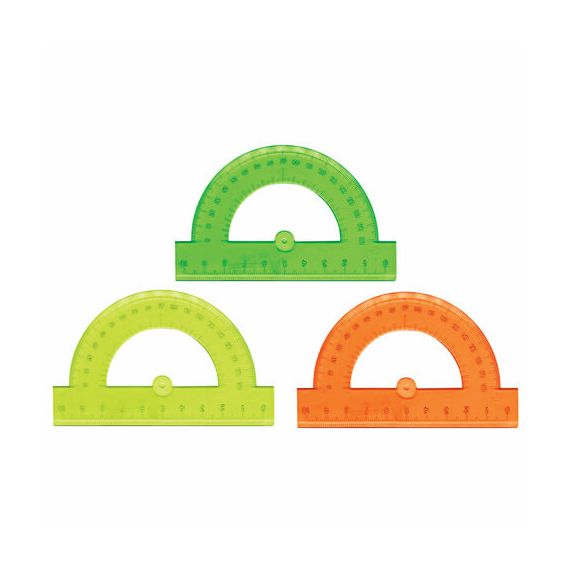 Транспортир пластик 10 см, 180 градусов, BRAUBERG, прозрачный, неоновый, ассорти, 210620