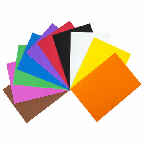 10 интенсивных цветов формата А4 позволят создать уникальную и эффектную поделку! Толщина каждого листа - 1 мм, размер листа - 29,7х21 см. Материал очень прост в использовании: легко режется обычными ножницами, ему можно придать любую форму растягивая и скручивая.