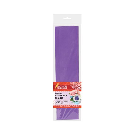 Пористая резина (фоамиран) для творчества, ФИОЛЕТОВАЯ, 50х70 см, 1 мм, ОСТРОВ СОКРОВИЩ