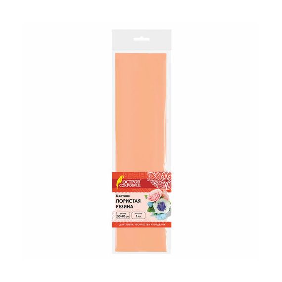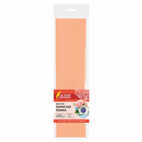 Пористая резина (фоамиран) для творчества, ПЕРСИКОВАЯ, 50х70 см, 1 мм, ОСТРОВ СОКРОВИЩ