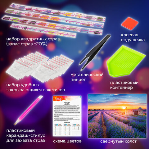 - набор квадратных страз разных цветов, пронумерованных в соответствии со схемой;