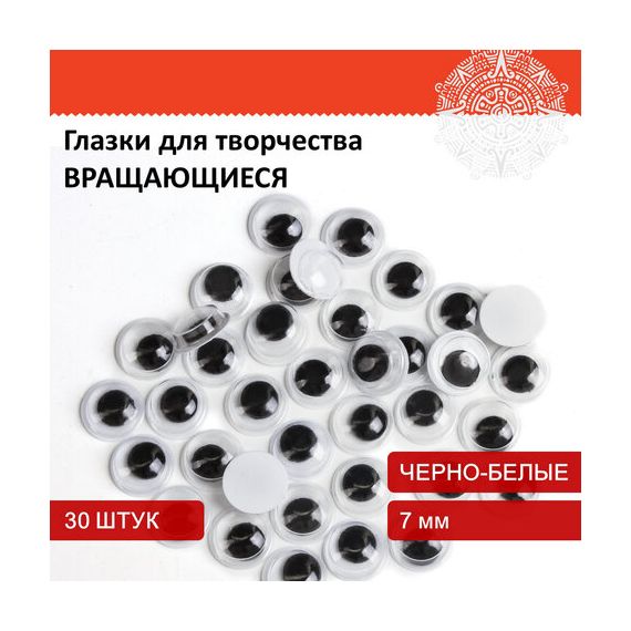 Глазки для творчества, вращающиеся, черно-белые, 7 мм, 30 шт., ОСТРОВ СОКРОВИЩ