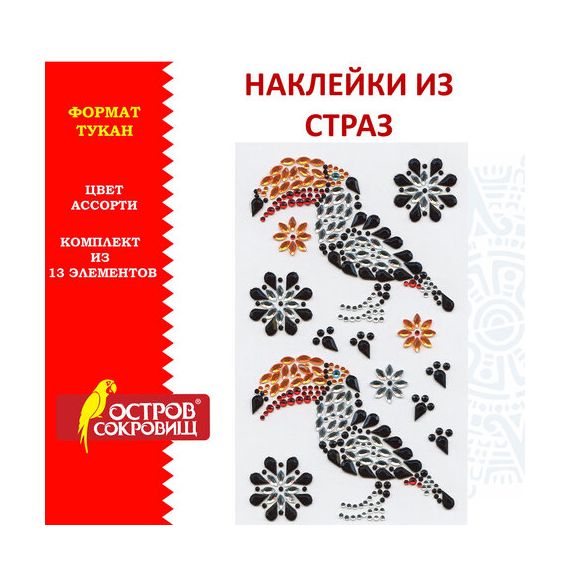 Наклейки готовые из страз ТУКАН, 13 декоративных элементов, 9,5х15,5 см, ОСТРОВ СОКРОВИЩ