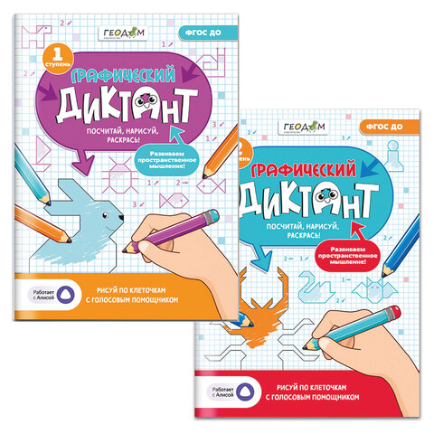 Графический диктант "Рисуй по клеточкам", 210х297 мм, 28 стр., АССОРТИ, 2 вида, ГЕОДОМ