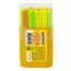 Набор содержит 50 пластиковых палочек с закругленными краями 4-х ярких цветов. Палочки помещены в пластиковый желтый футляр с прозрачной крышкой. Размер футляра - 21х43х75 мм. Поставляется без упаковки.