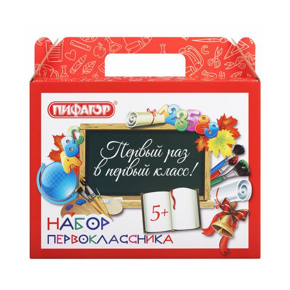 Подарочный короб ПИФАГОР позволяет красиво оформить необходимые первокласснику письменные и канцелярские принадлежности. Состав набора можно сформировать самостоятельно в зависимости от требований учебных заведений или собственных предпочтений.