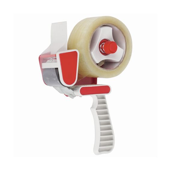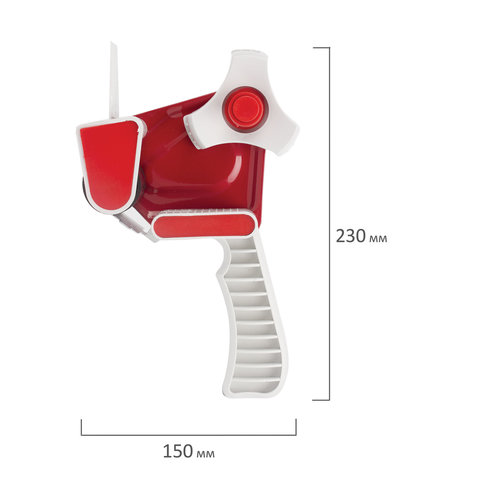Предназначен для клейкой упаковочной ленты шириной до 50 мм. Удобный и легкий! Винт для регулировки натяжения ленты предотвращает ее случайное разматывание. Прижимная пластина способствует непрерывному наклеиванию. Встроенный нож позволяет легко отрезать ленту. Удобная пластиковая ручка светло-серого цвета. Корпус выполнен из металла в красном цвете. Упаковочная клейкая лента в комплект не входит. Размер - 230х150х55 мм. Вес - 450 г.