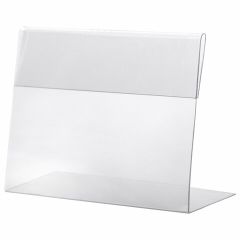 Устойчивая практичная конструкция изготовлена из прозрачного акрилового стекла толщиной 1 мм. Имеет размер 150х105 мм. Максимальная толщина вставки составляет 1,5 мм, глубина основания держателя информации - 75 мм, ширина ножки - 1 мм. Идеально подходит для формата А6.