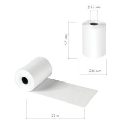 Чековая лента состоит из одного слоя бумаги с нанесенным на него термоактивным покрытием. Бумага используется та же, что и для производства роликов для факсов. Ширина – 57 мм. Длина намотки – 21 метр. Диаметр втулки – 12 мм. Плотность – 48+/-5 г/м2. Толщина – 55+/-2 мкм. Белизна – 83+/-2%. • Длина намотки: 21 метр; • Диаметр втулки: 12 мм.