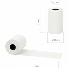 Чековая лента применяется для кассовых аппаратов, платежных терминалов самообслуживания, банкоматов и т.п. Чековая лента с наружным термослоем имеет ширину 57 мм и общую длину 15 м. Диаметр рулона - 33 мм, диаметр втулки - 12 мм. Плотность бумаги чековой ленты - 44 г/м2.