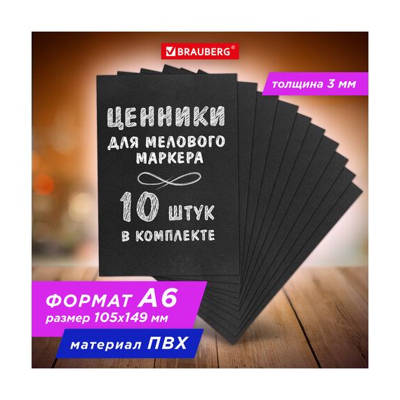 Ценник для мелового маркера А6 (10,5х14,9 см), КОМПЛЕКТ 10 шт., 3 мм, ПВХ, ЧЕРНЫЙ, BRAUBERG, 291288