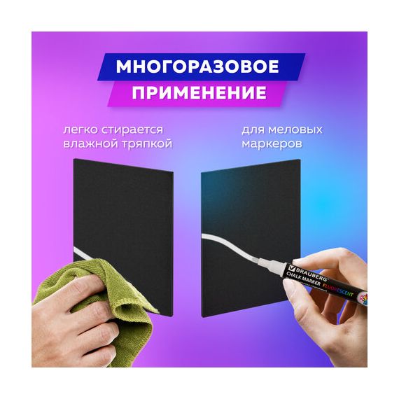 Также в нашем интернет-магазине вы можете выбрать как белые, так и цветные меловые маркеры (поштучно и в наборах) для нанесения надписей (например, 151526).