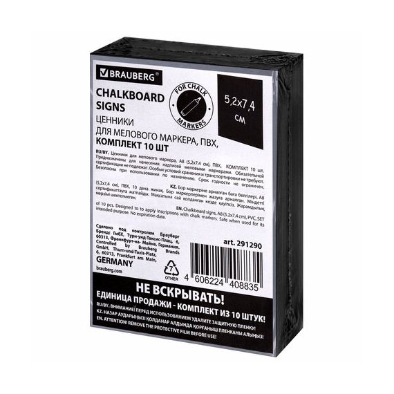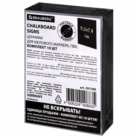 Ценник для мелового маркера А8 (5,2х7,4 см), КОМПЛЕКТ 10 шт., 3 мм, ПВХ, ЧЕРНЫЙ, BRAUBERG, 291290