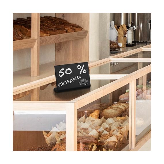 Ценники меловые A6 (10,5x14,8 см), комплект из 10 шт. L-образная форма не требует отдельного держателя, наклейки или подставки – ценник легко расположить на любой горизонтальной поверхности. Материал ценника – ПВХ черного цвета, толщина 3 мм. Упаковка комплекта – термоусадочная пленка.