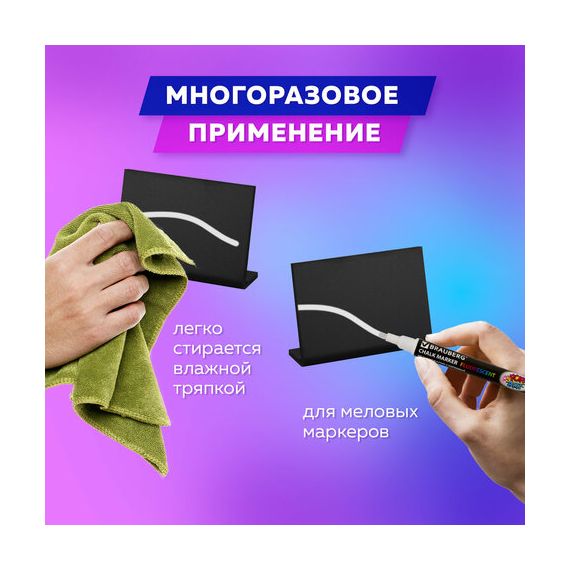 Также в нашем интернет-магазине вы можете выбрать как белые, так и цветные меловые маркеры (поштучно и в наборах) для нанесения надписей (например, 151526 и др.).