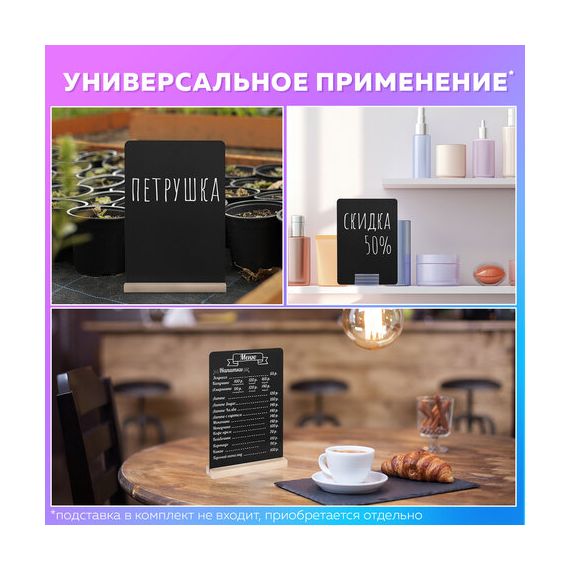 Меловые тонкие таблички А4 (21x29,7 см), комплект из 10 шт. Материал ценника – ПВХ черного цвета, толщина 0,5 мм.