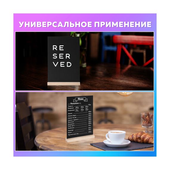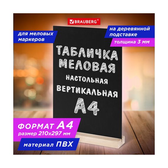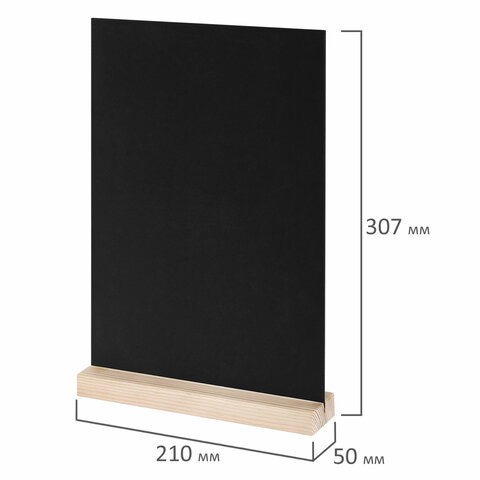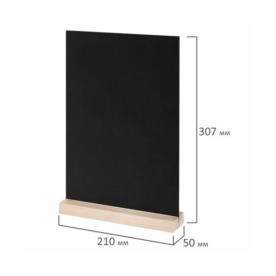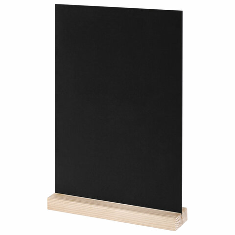 Табличка меловая настольная А4, вертикальная, на деревянной подставке, ПВХ, черная, BRAUBERG, 291298