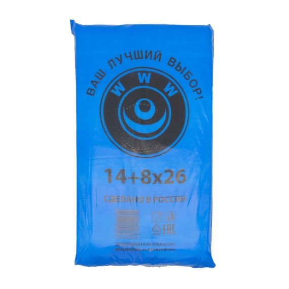 Пакет фасовочный ПНД 14+8x26 7мк В пластах WWW синяя